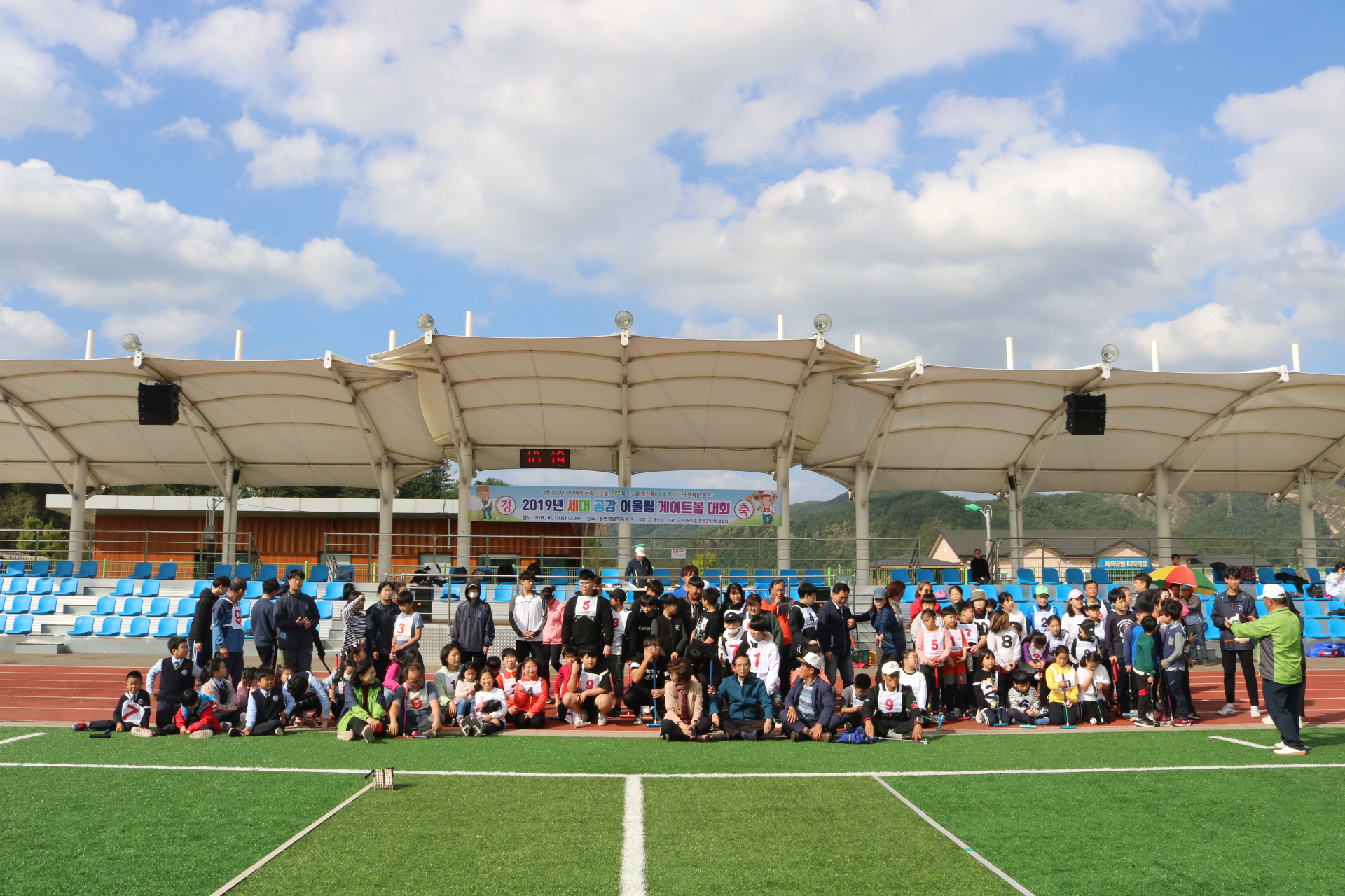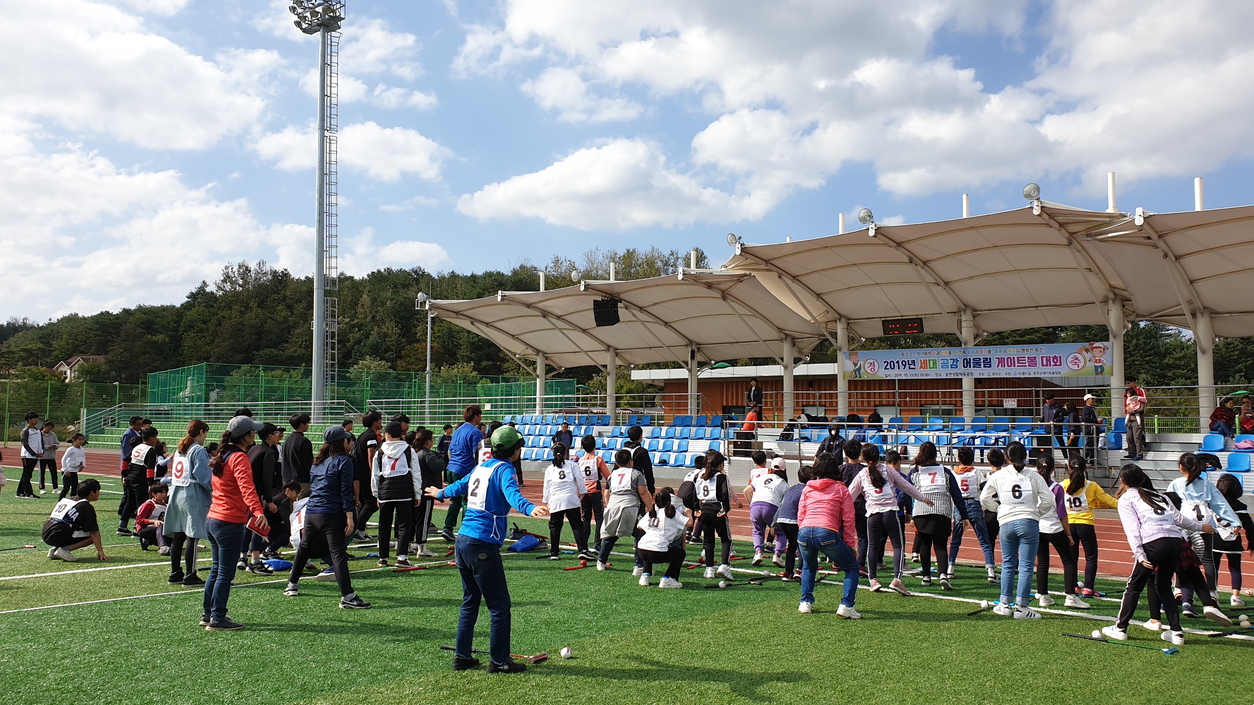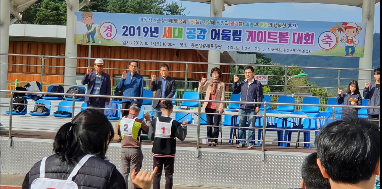 사) 홍천교육복지네트워크 꿈이음(이사장: 석도익, 이하 꿈이음)과 홍천군게이트볼협회(회장:김주용) 공동주관으로 10월 12일(토) 10시, 동면생활체육공원에서 ‘2019 세대공감 어울림 게이트볼 대회’가 16개팀 140여명이 참가한 가운데 개최됐다.