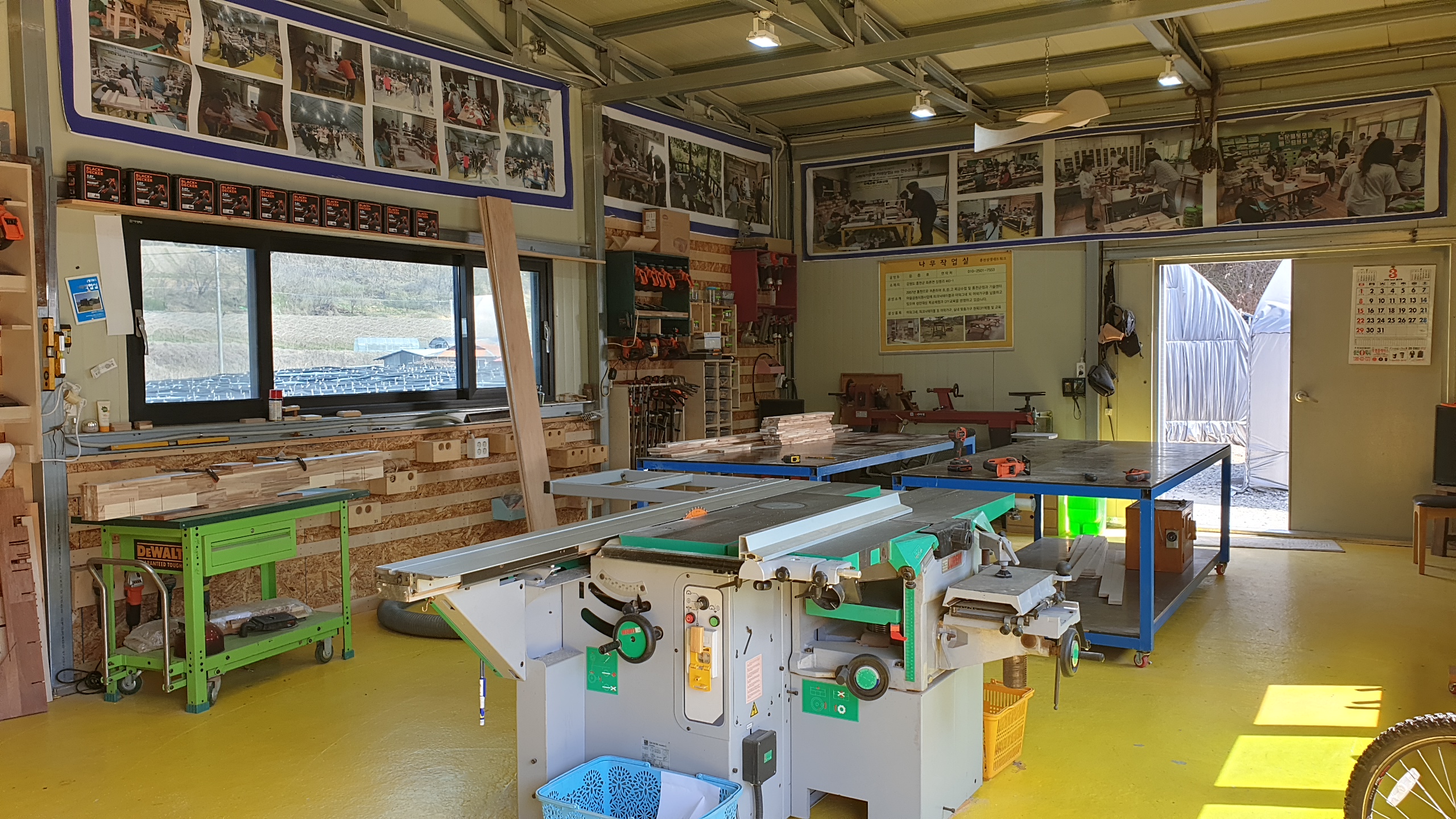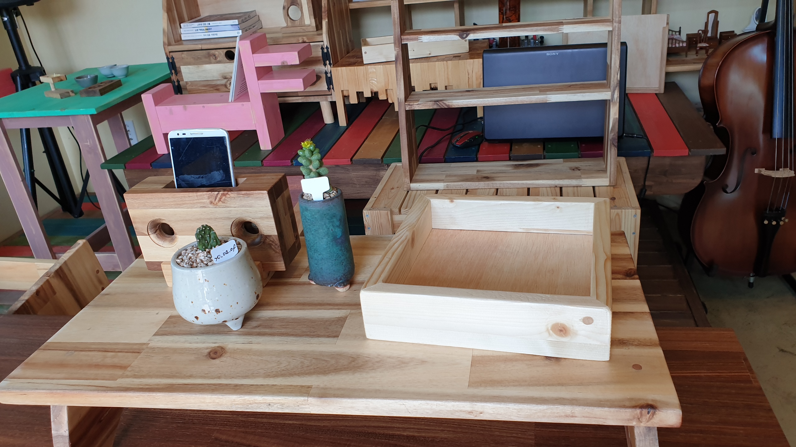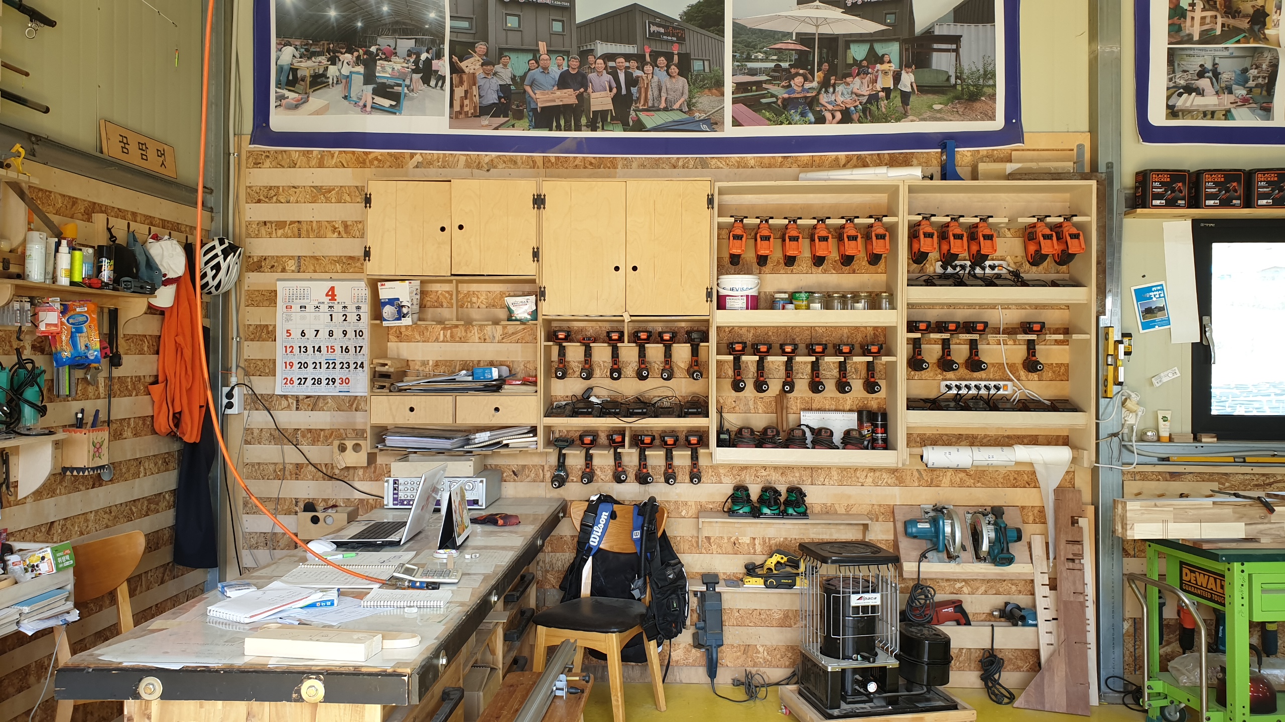 15년전, 사장님은 부산에서 홍천으로 귀촌을 하셨답니다. 원래 목수일을 하셨었는데 홍천지역에 정착하면서 학교 방과후 프로그램으로 DIY교육, 맞춤형 목공수업도 하셨고, 원목야외테이블 등 각종 목공 가구나 작품들을 주문 제작하신다고 합니다.