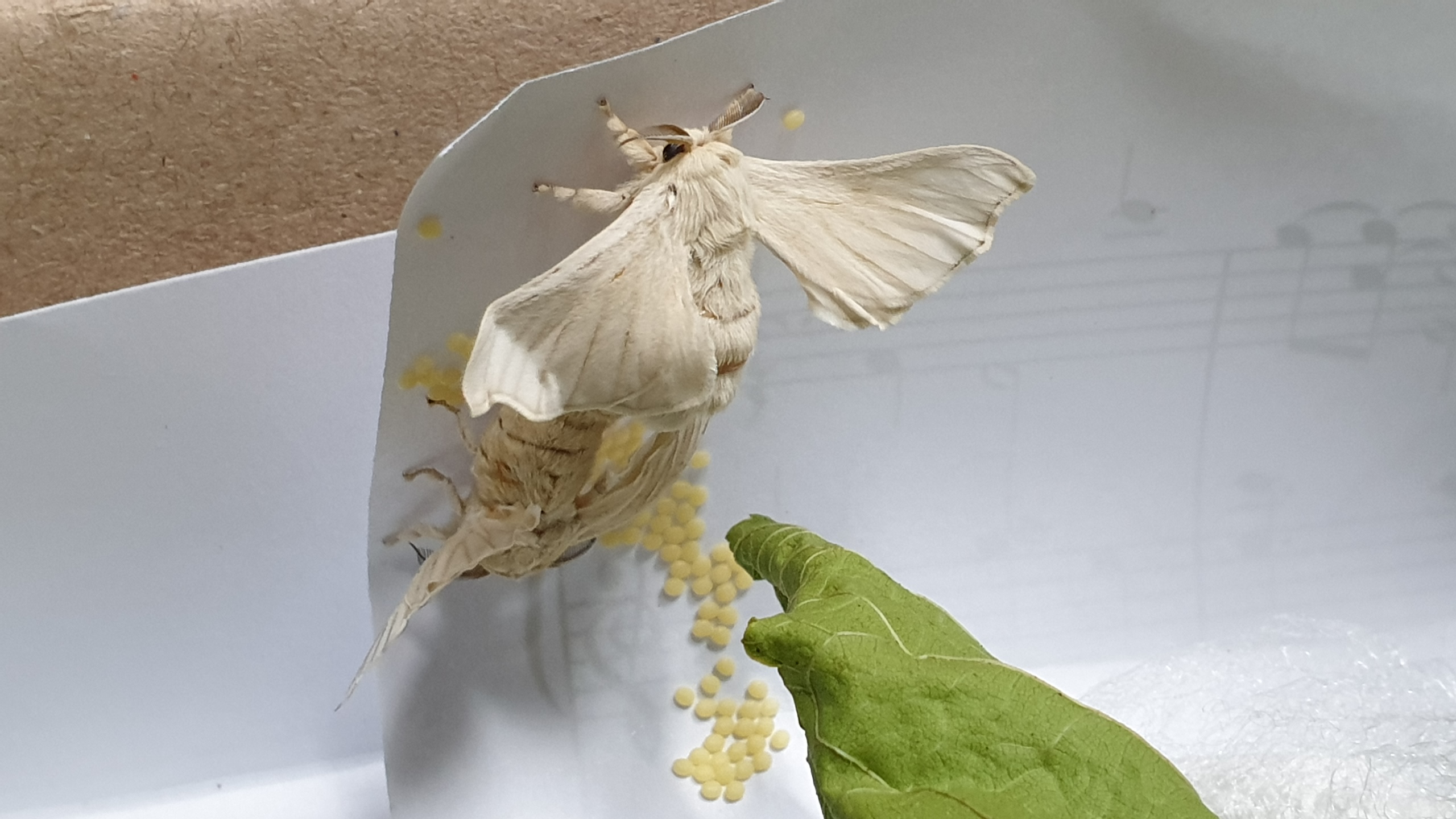 암놈, 숫놈 누에나방끼리 교미를 약 3일정도 하더니 알을 낳더군요.