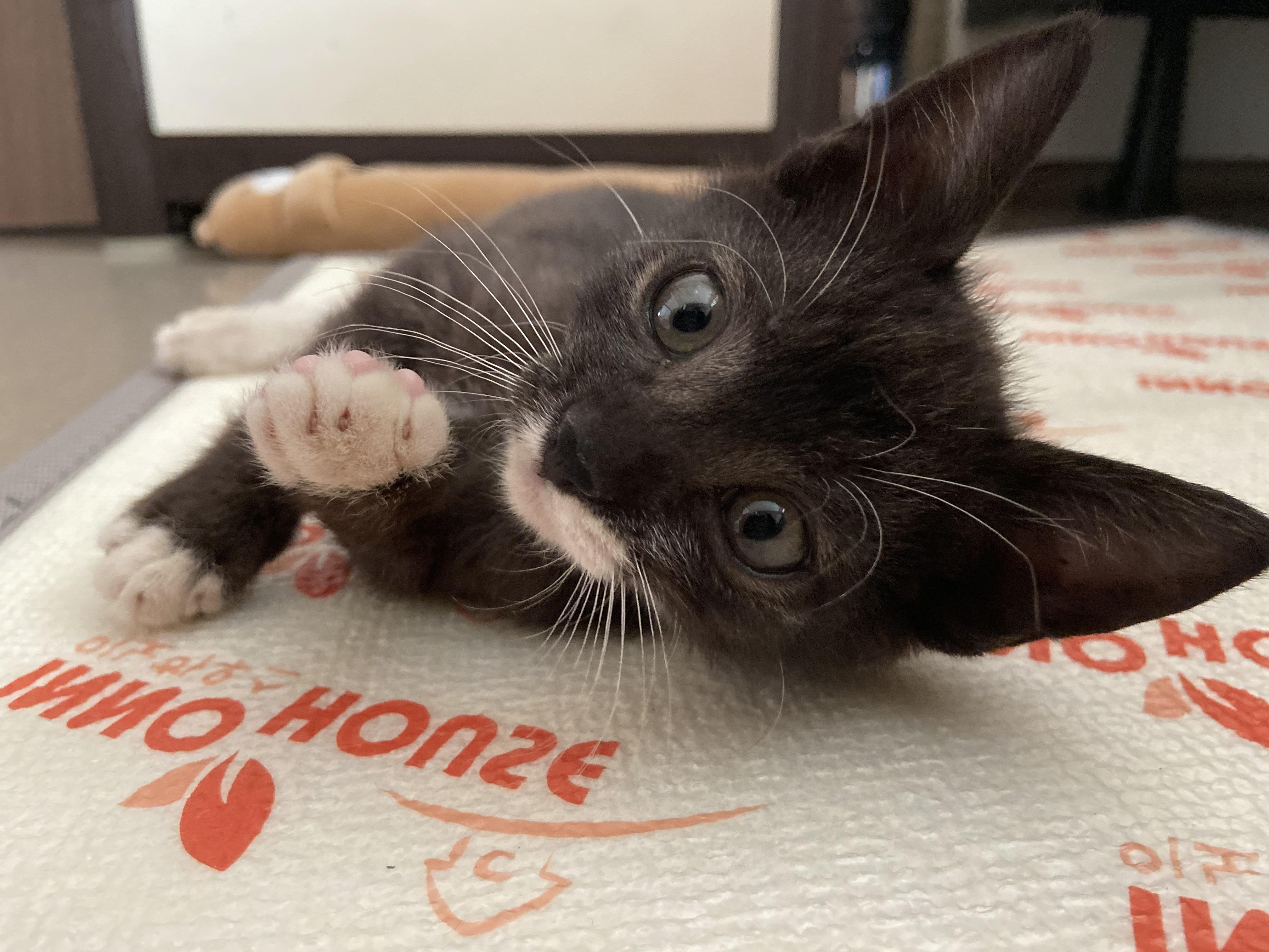 유기묘보호센터에서 2개월전에 집으로 데려왔다는 것입니다. 다른 예쁘장한 색깔의 고양이보다는 아무도 데려가지도 않을 검은 고양이를 데려 왔다고 합니다. 입주변과 발부분이 하얀색이라 마치 양말을 신고 있는 듯하여 이름을 '양말이'라고 붙였다고 합니다.