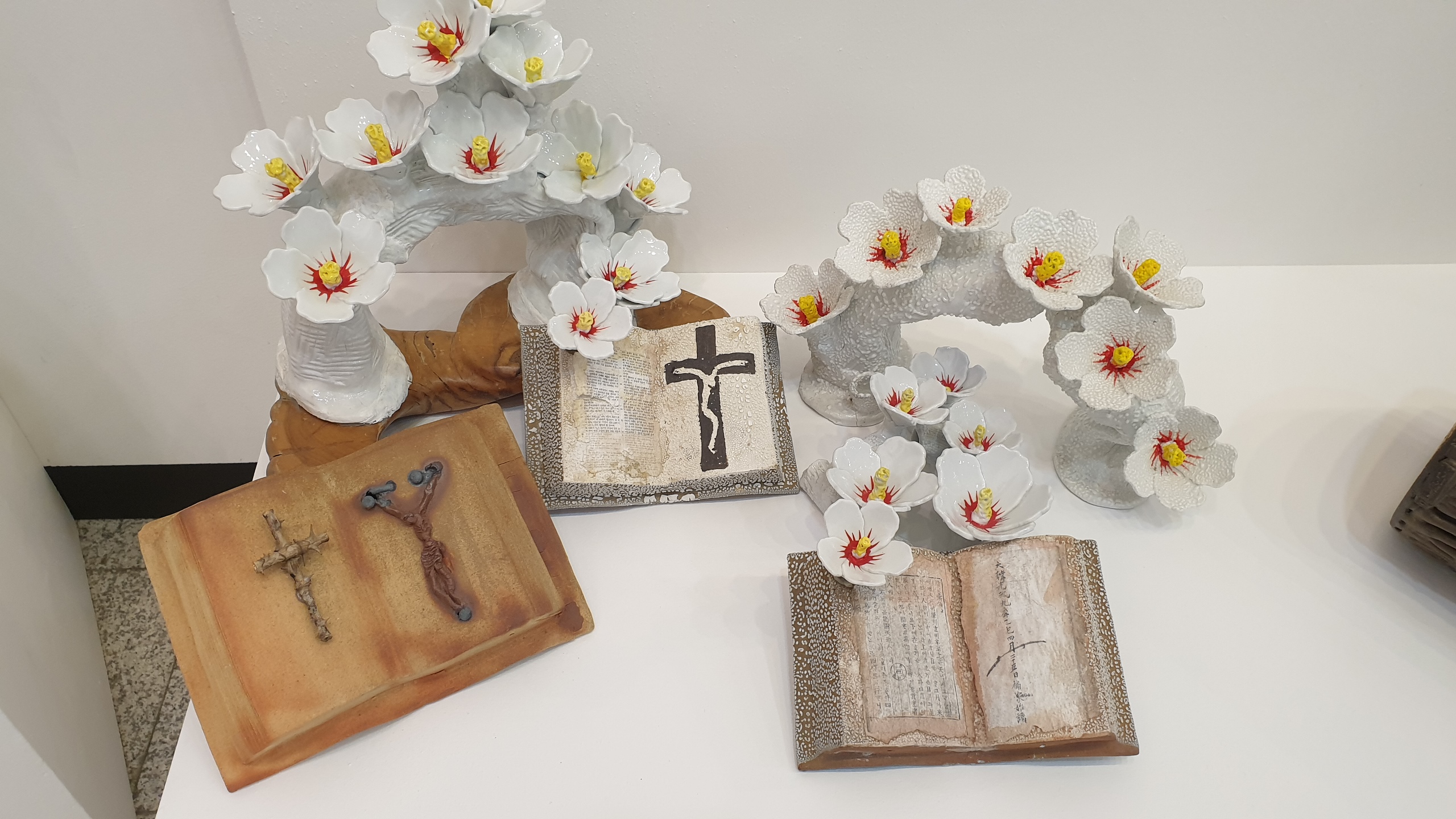 대나무의 고장 담양이 고향인 작가는 흙으로 대나무 마디를 빚고, 무궁화꽃을 빚어 주제에 맞는 작품들을 창작했습니다.