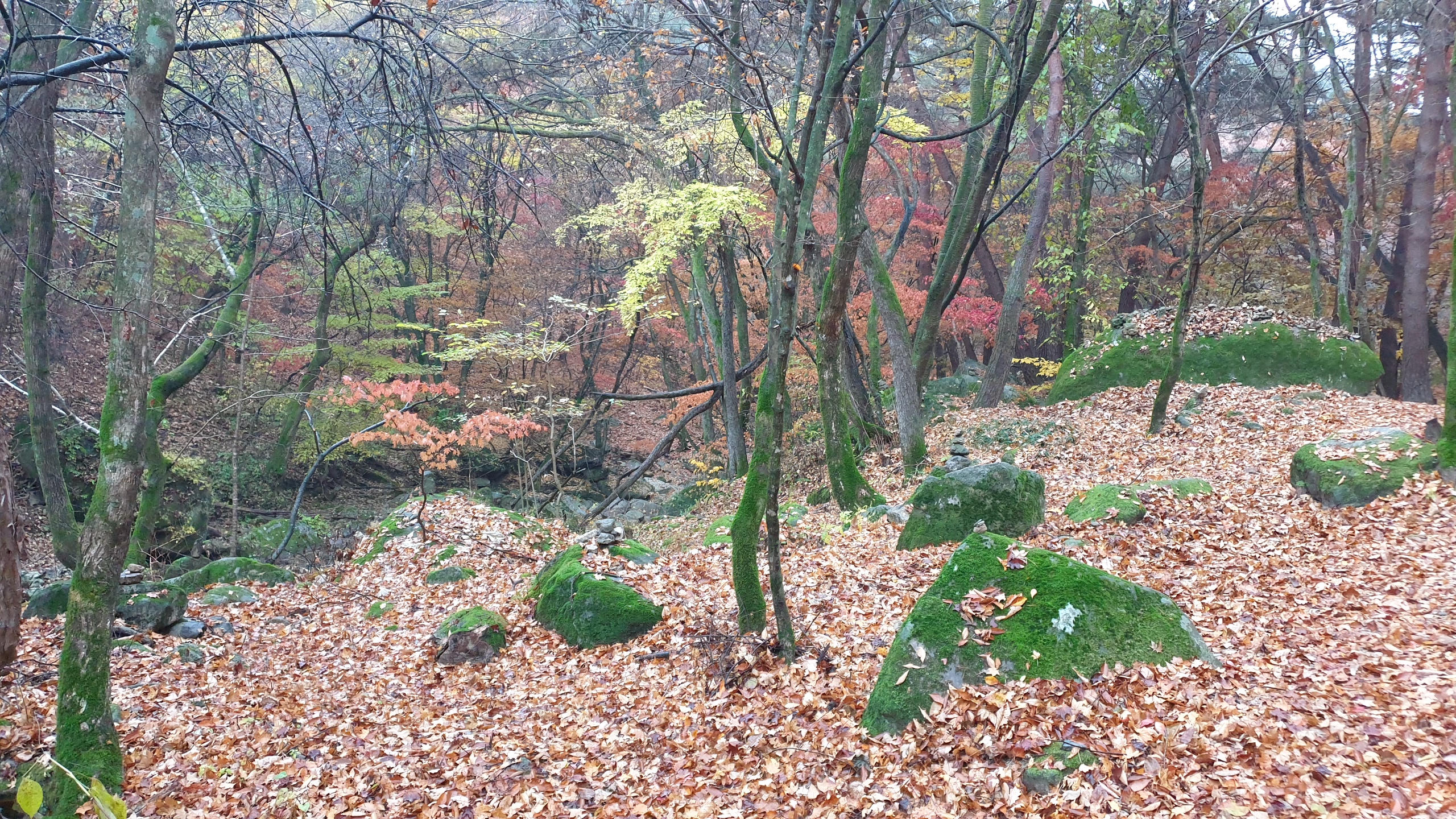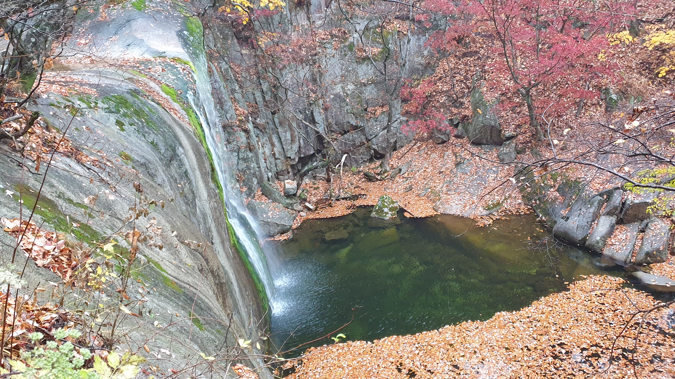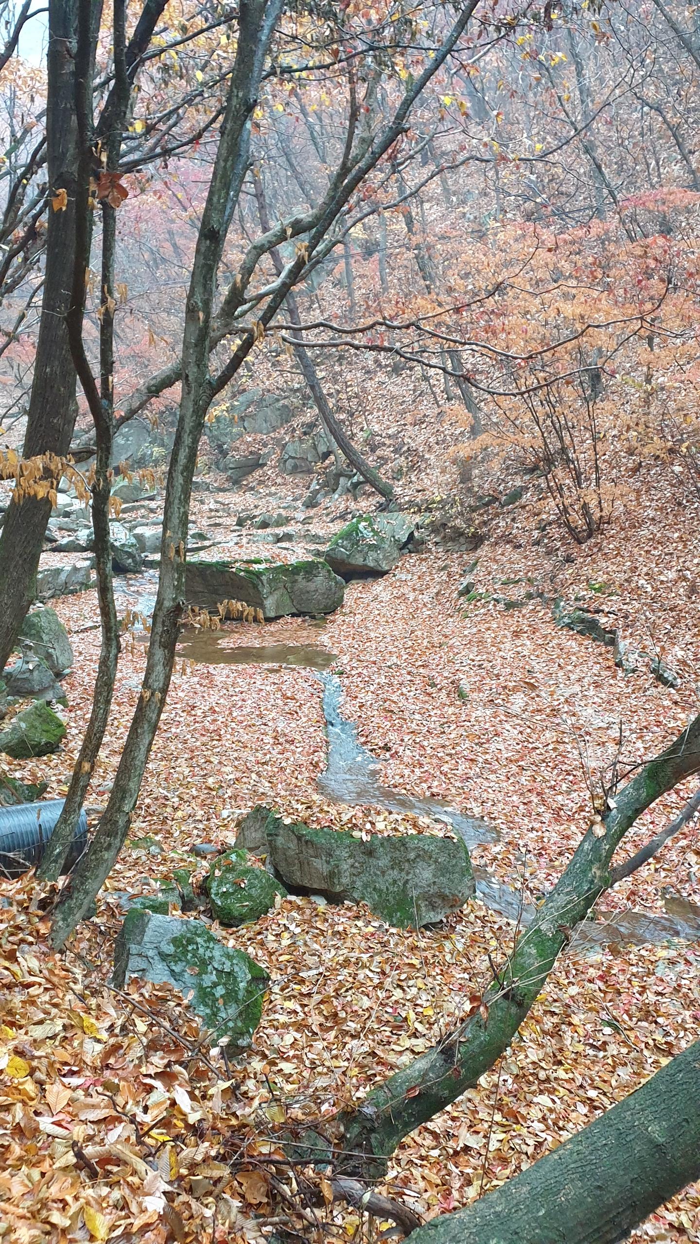 청아한 물이 가을 단풍을 실어 계곡으로 흘려 보냅니다.