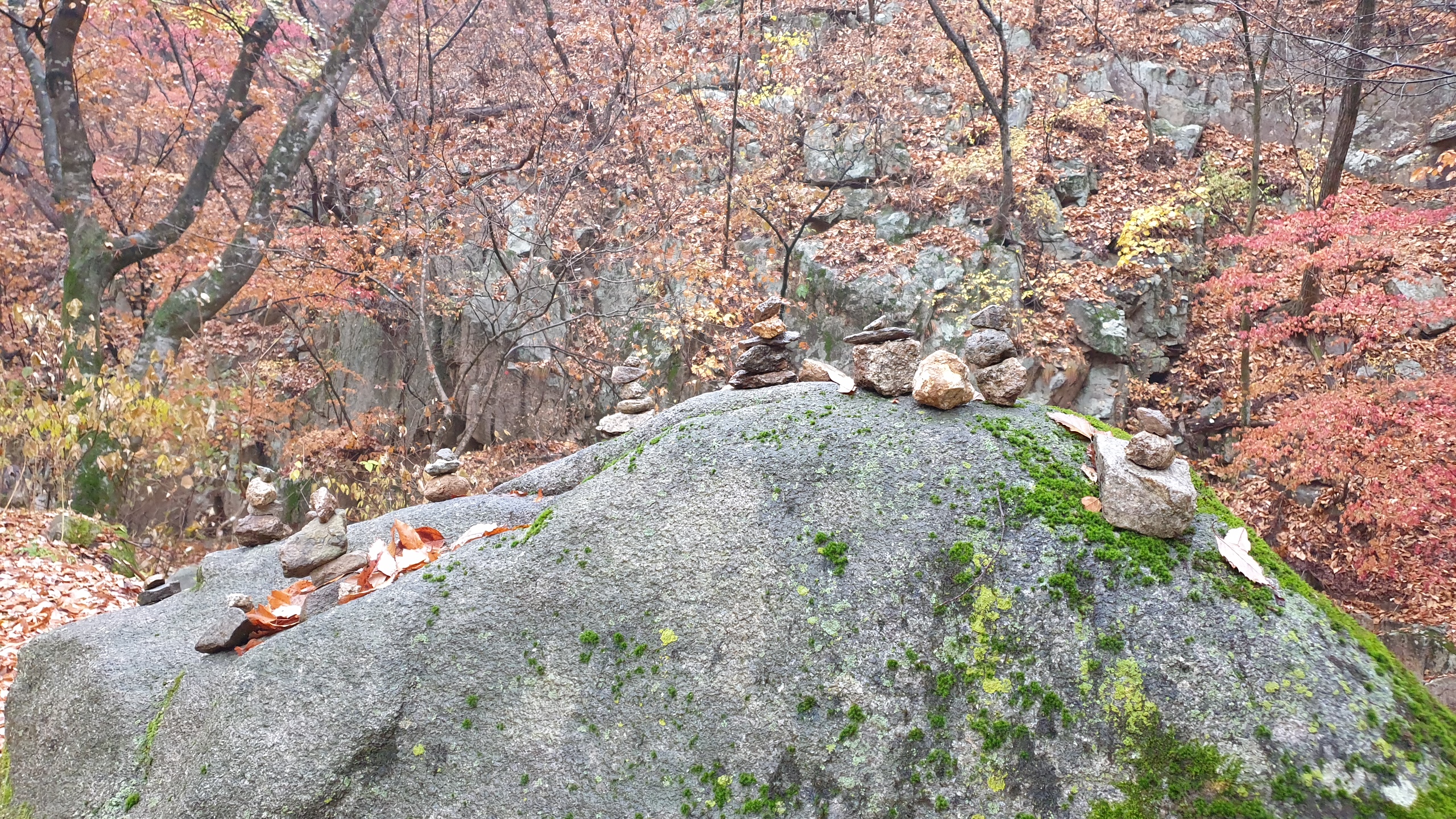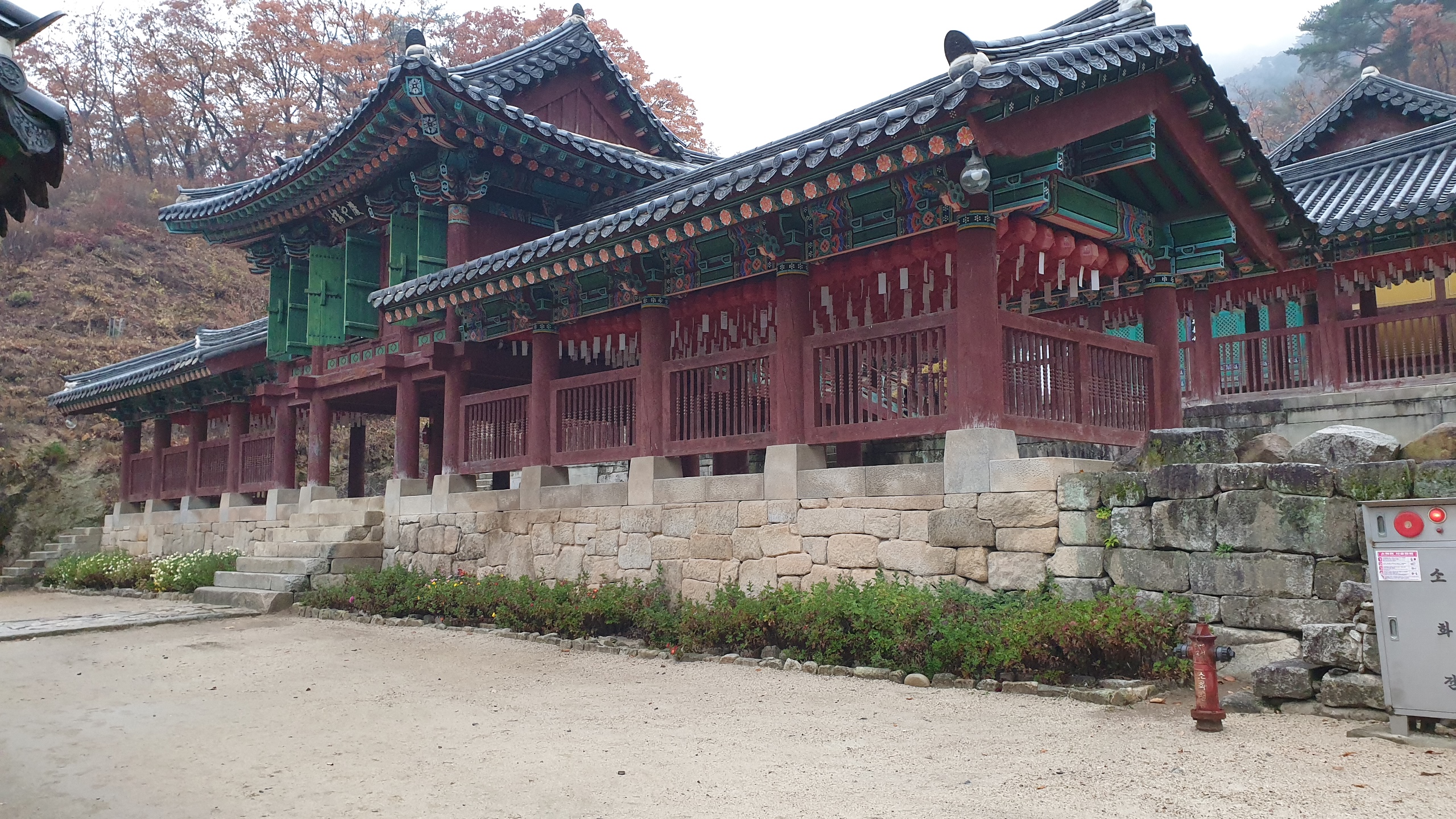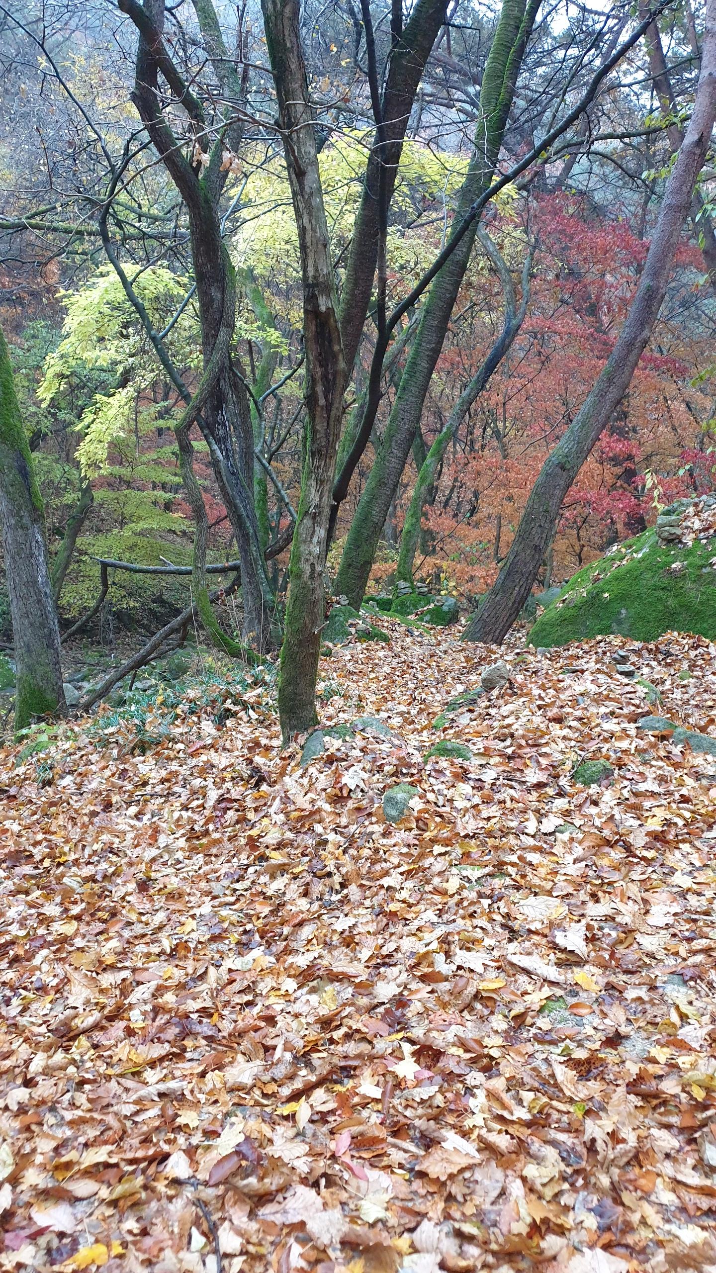 상사뱀이 윤회를 벗어난 곳이라는 설화가 남아있는 청평사 회전문을 지나 대웅전까지 올라 뒤돌아 산자락을 내려보며 스마트폰에 가슴 속에 올해의 단풍들을 품어봅니다.