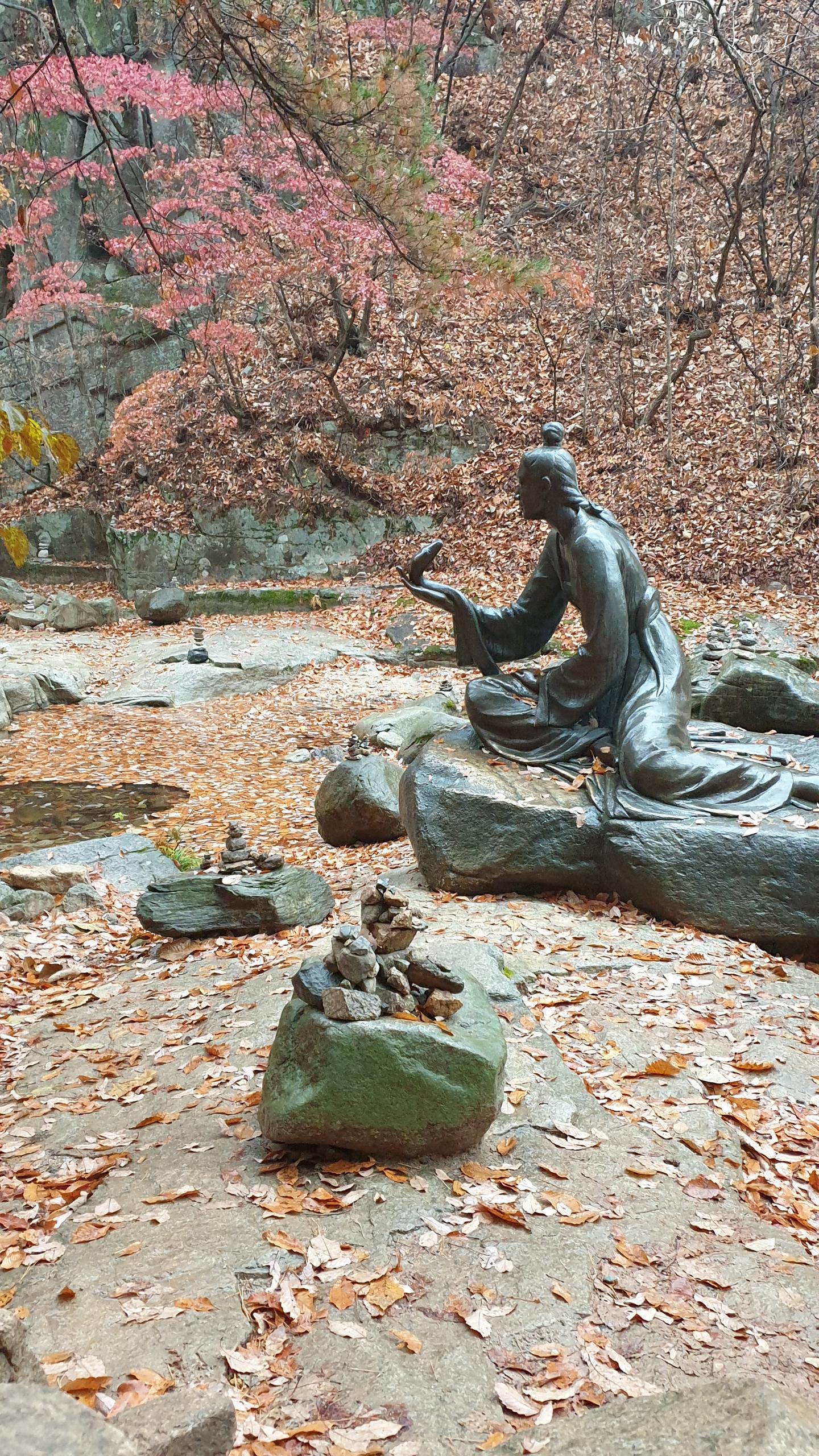 당나라 공주를 사랑하다 당태종에게 죽임을 당하고 상사뱀으로 환생하여 공주의 몸에 붙어 살았다는 설화가 전해지는 청년 동상을 지나 거북바위를 지나 구송폭포까지 한걸음 두걸음 발걸음을 옮깁니다.