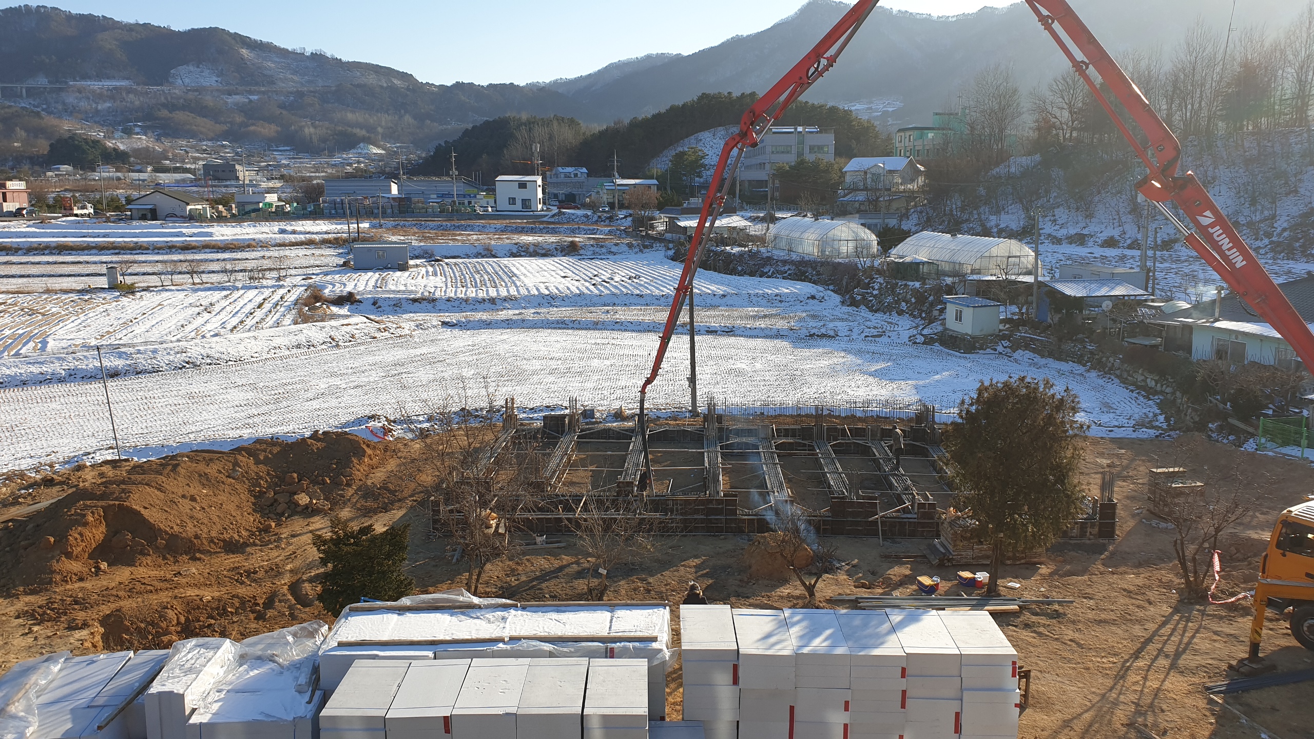추운 겨울이라 콘크리트가 잘 양생이 되어야 할텐데 걱정이 이만저만이 아닙니다. 날씨가 잘 도와주길 그저 바랄뿐입니다.