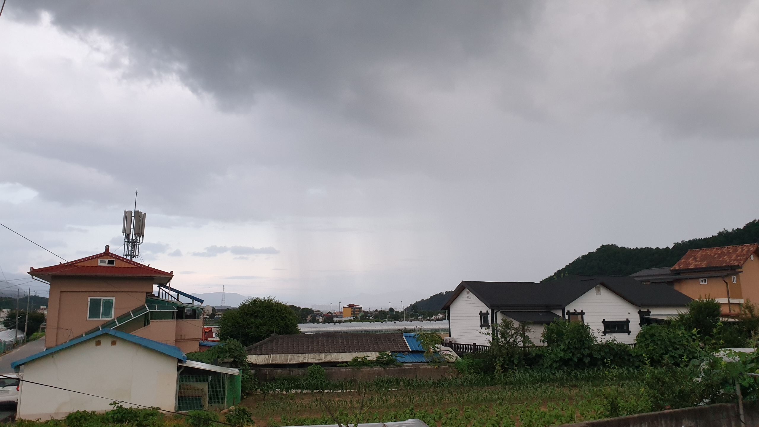 한쪽이 하늘로부터 땅사이에 비로 커튼치듯 채워졌습니다.