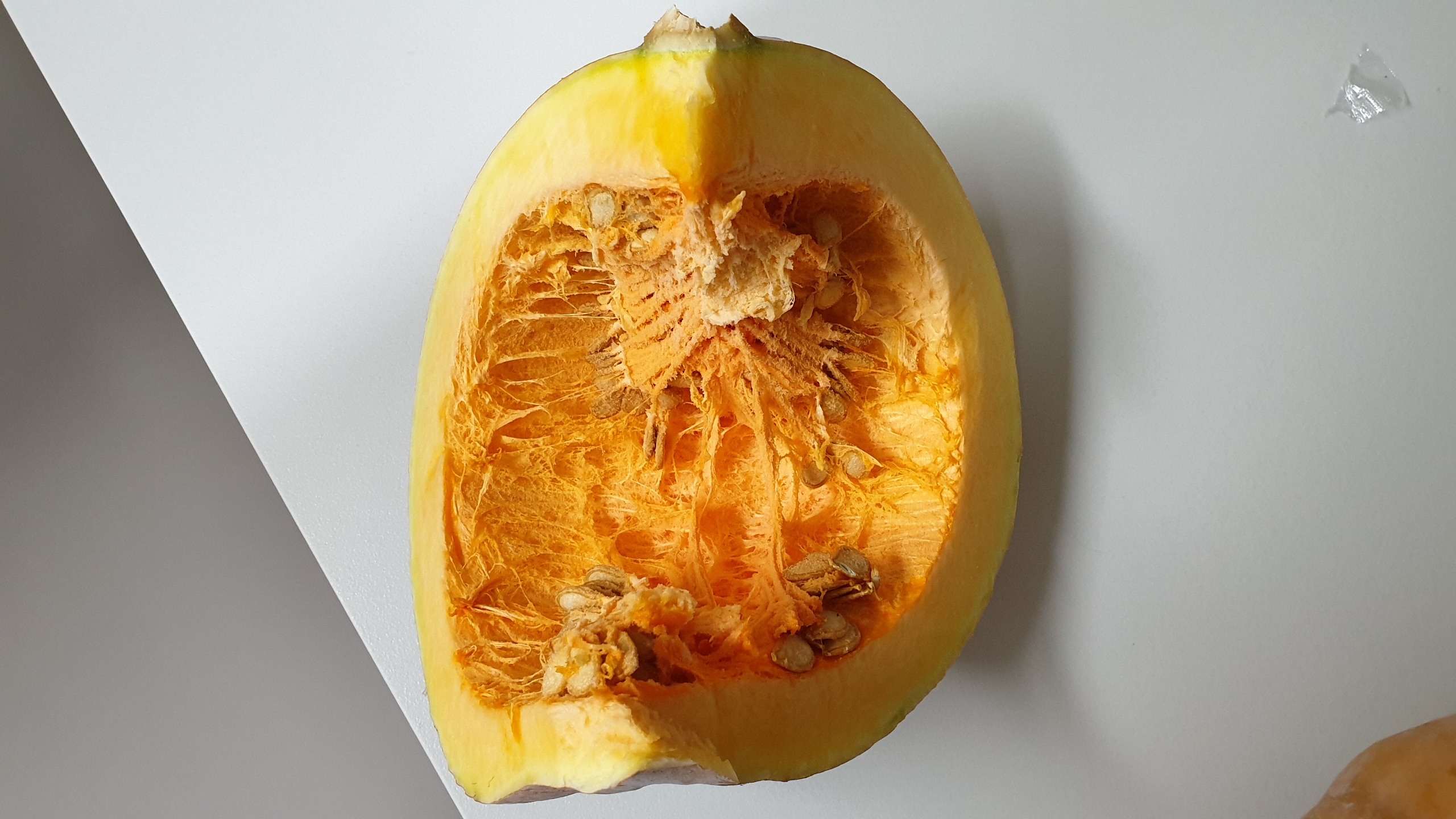 칼로 호박 일부를 잘랐습니다.