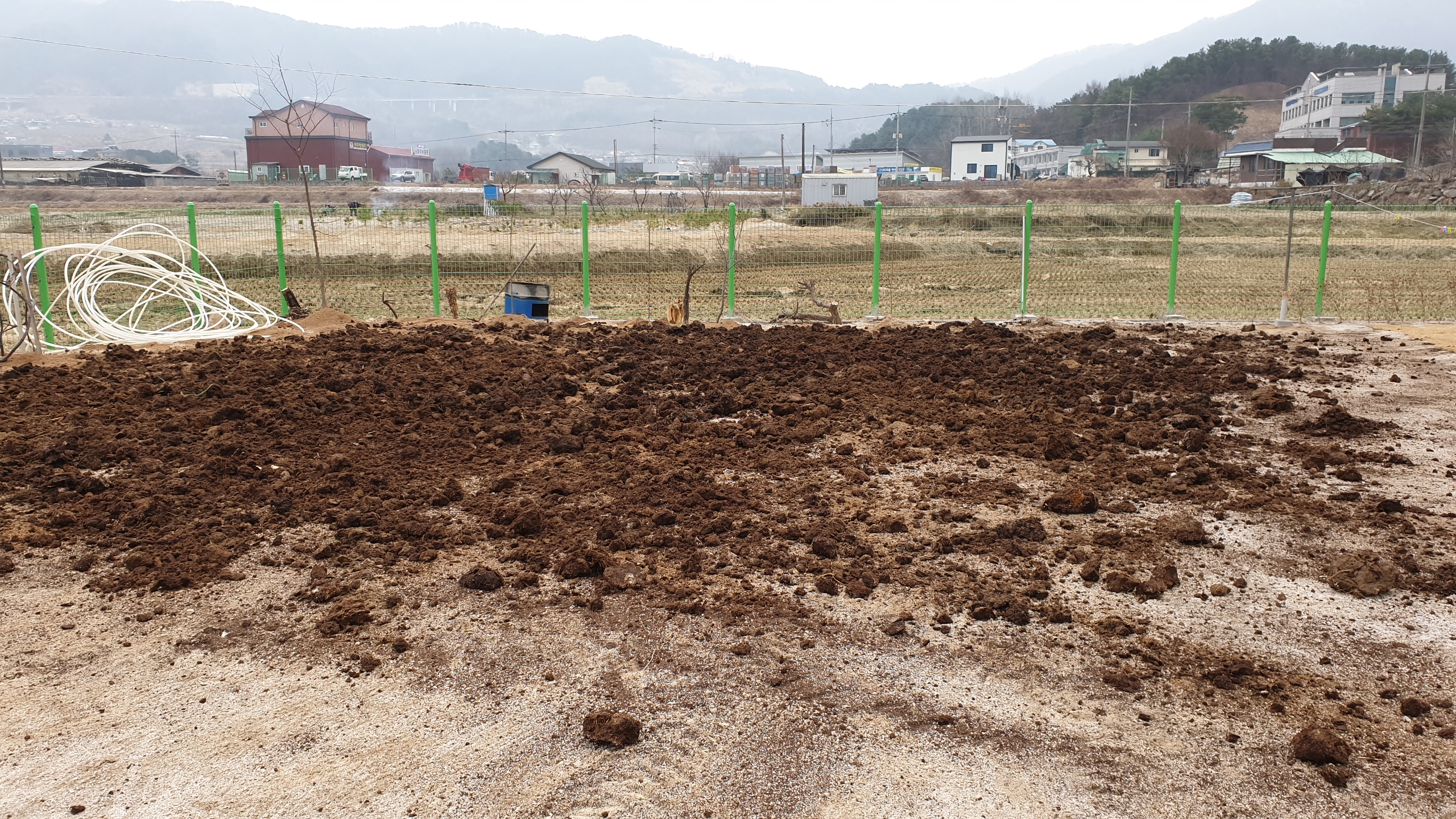일단 토지가 대부분 마사토여서 얼마전 농협에서 가축분퇴비 8포대를 사와 뿌렸습니다. 그리고 그 위에다 복합비료도 뿌렸습니다.. 거름은 생각보다 냄새가 나지 않았지만 시간이 지나니 봄바람과 더불어 냄새가 술술 피어 오릅니다.