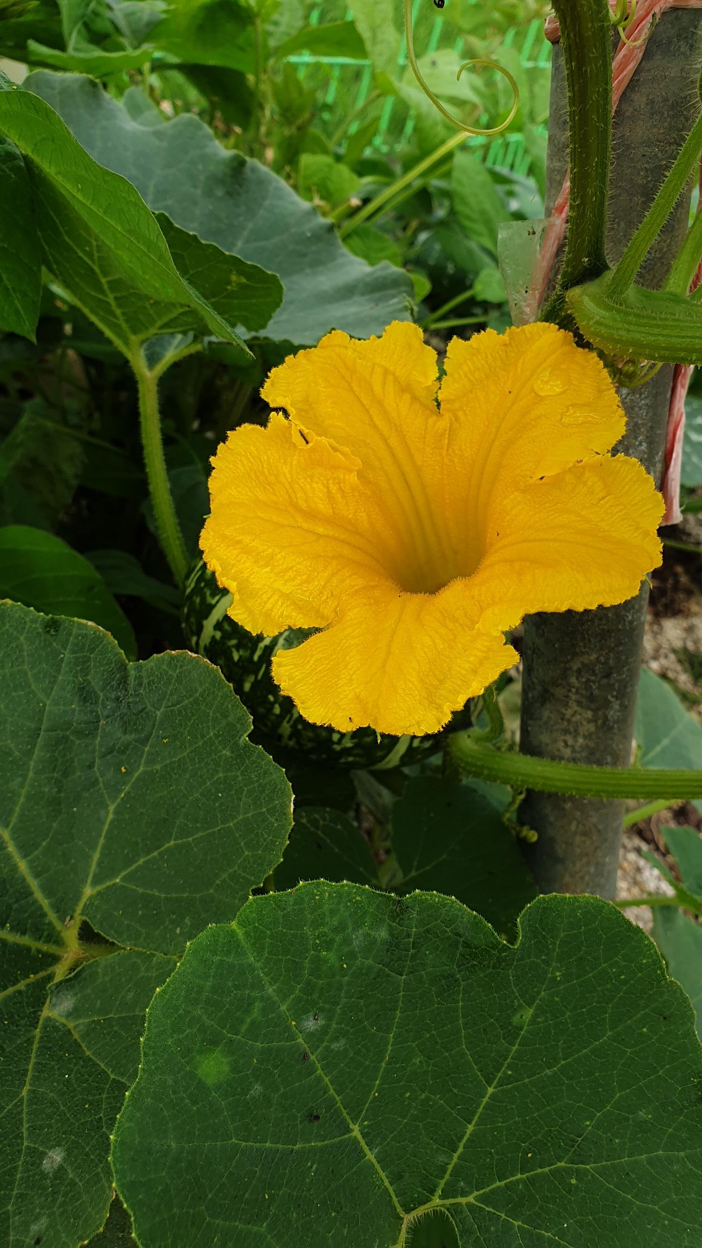 호박 모종을 사다심었는데 어느새 무럭무럭 자라 잎도 커지고 꽃도 피고 호박도 열렸습니다.