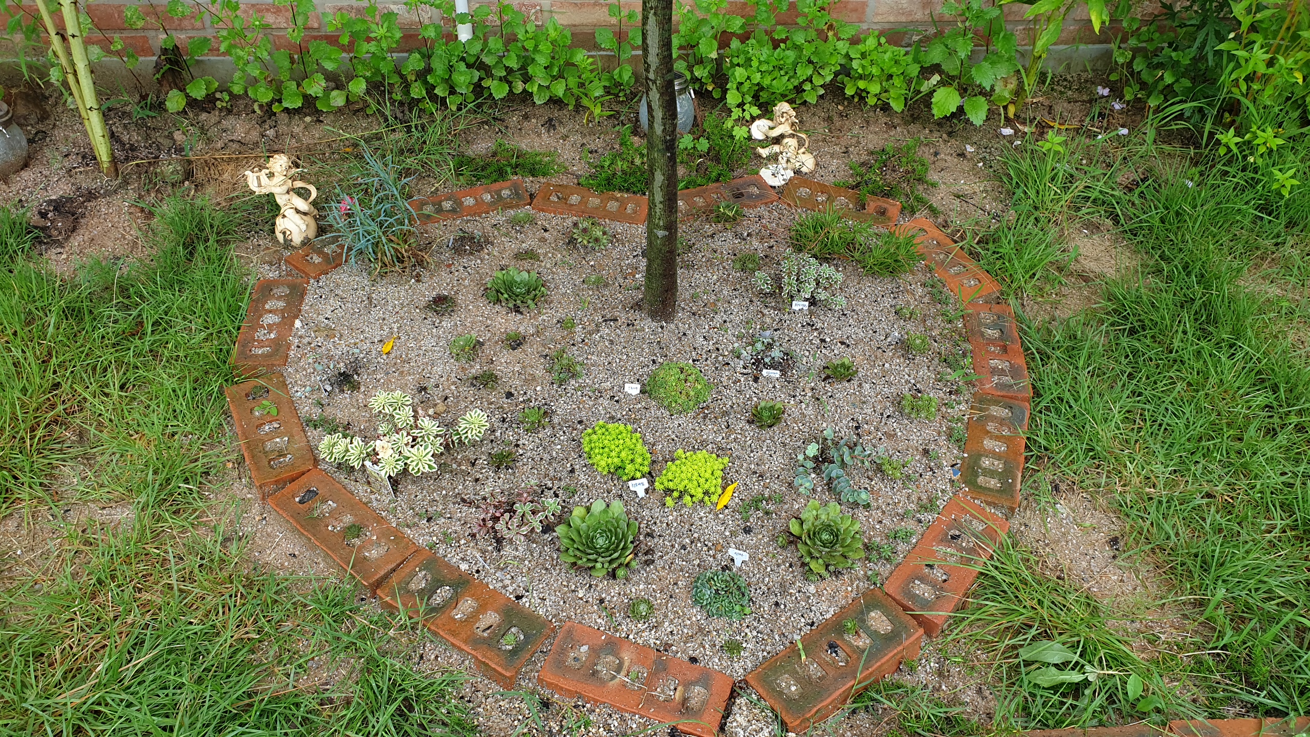 실내에서 키우다가 얼마전부터 바깥에 작지만 다육이 정원을 만들어 키우고 있습니다.