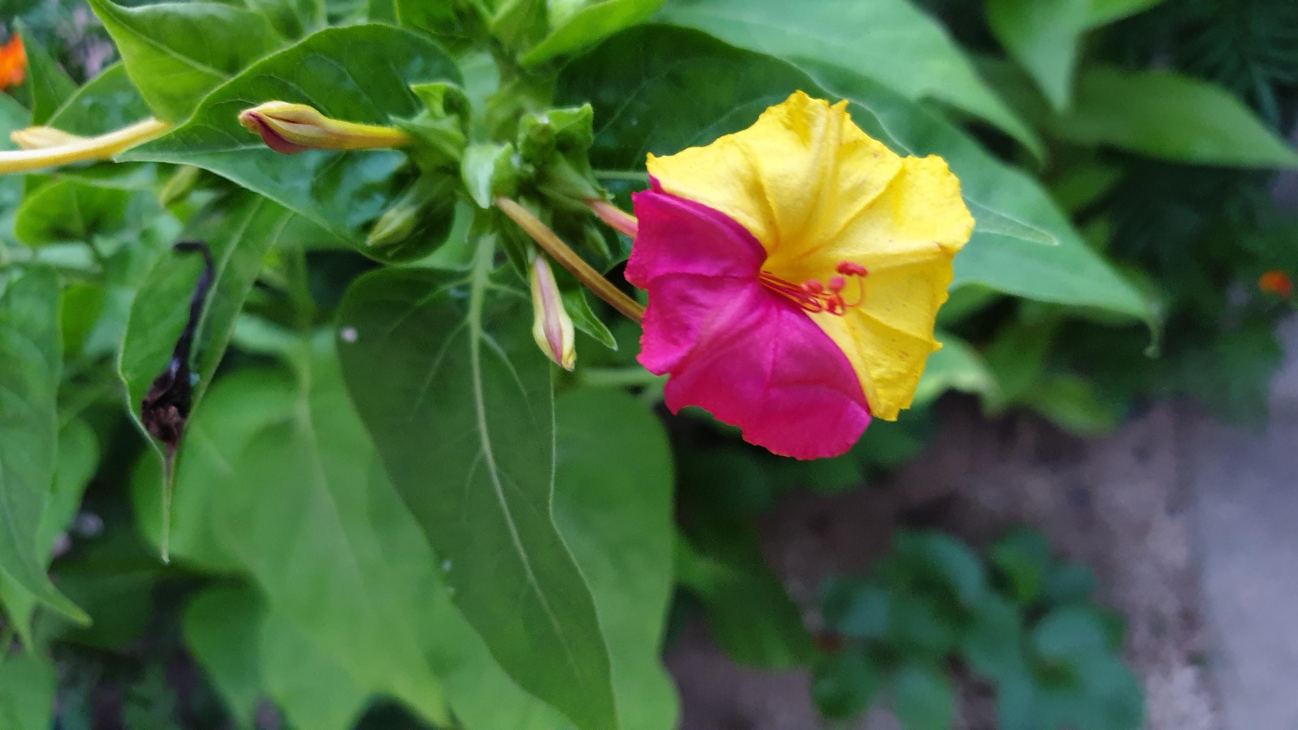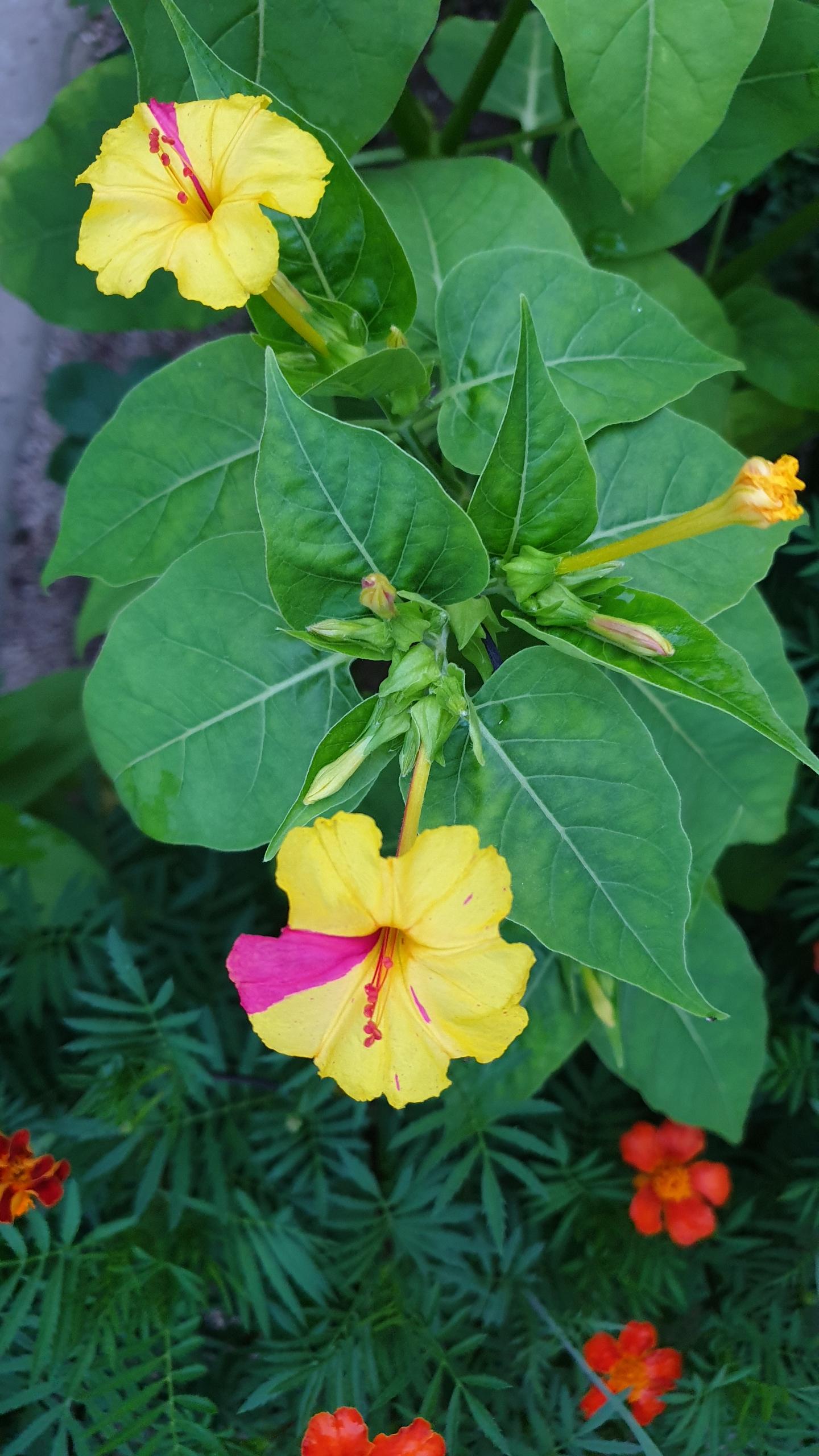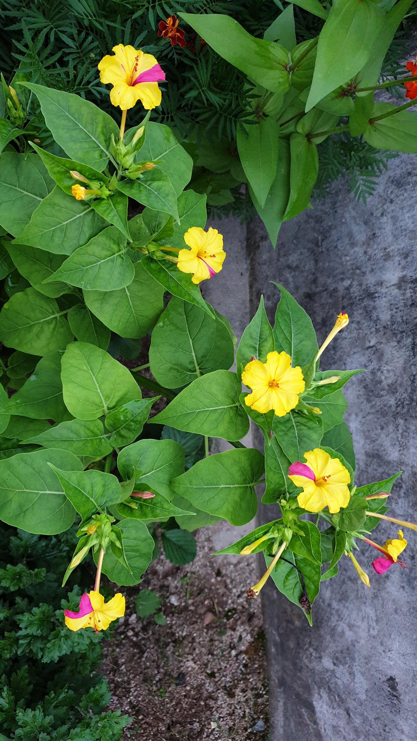 노랑색 분꽃인줄 알았는데 자세히보니 분홍색깔도 함께 어울려 있습니다.