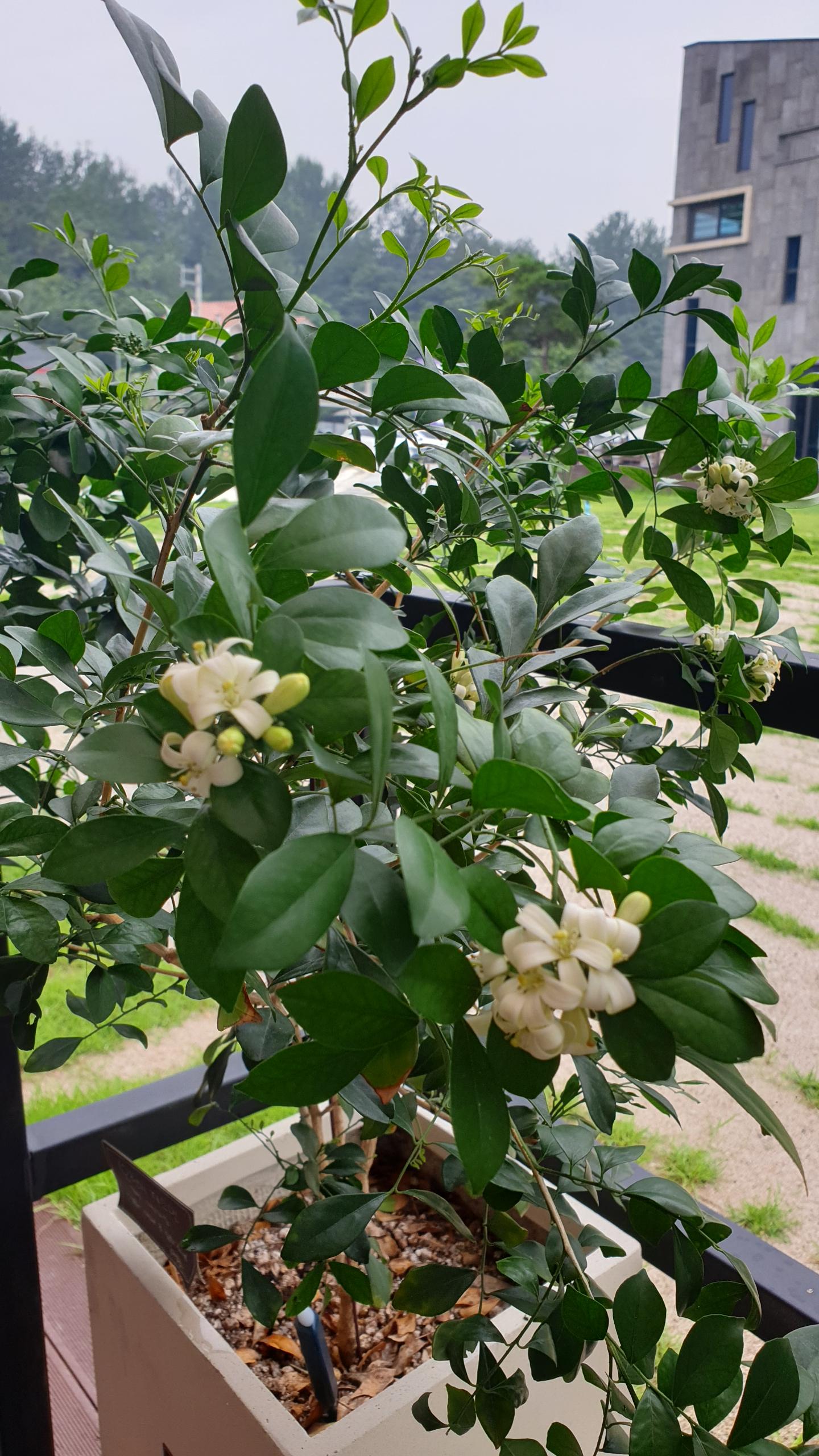 실내에 뒀다가 얼마전 바깥 데크위에 올려놓은 '오렌지 쟈스민'으로부터 나는 향기입니다.