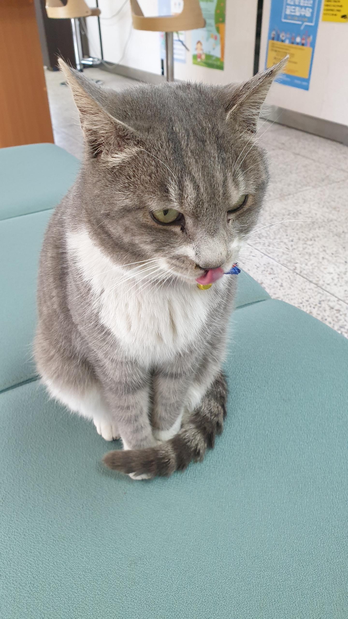 고양이는 혀를 널름거리며 고개를 돌리면서