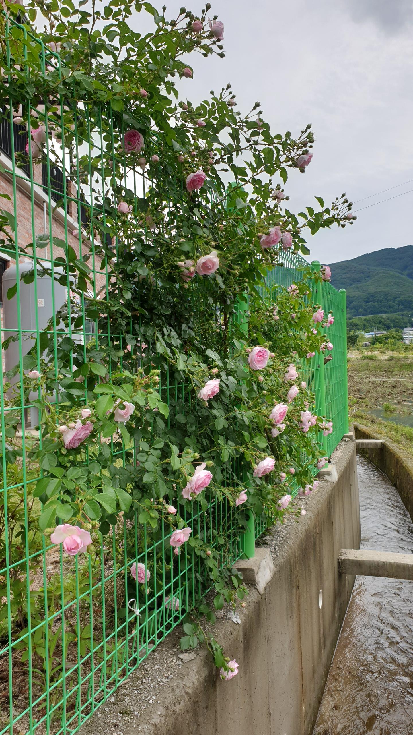 펜스 언저리에 가지를 잘라 심었던 찔레꽃도 제법 잘 자랍니다. 어느새 하이얀 꽃들을 향기 품기며 활짝 피었습니다.