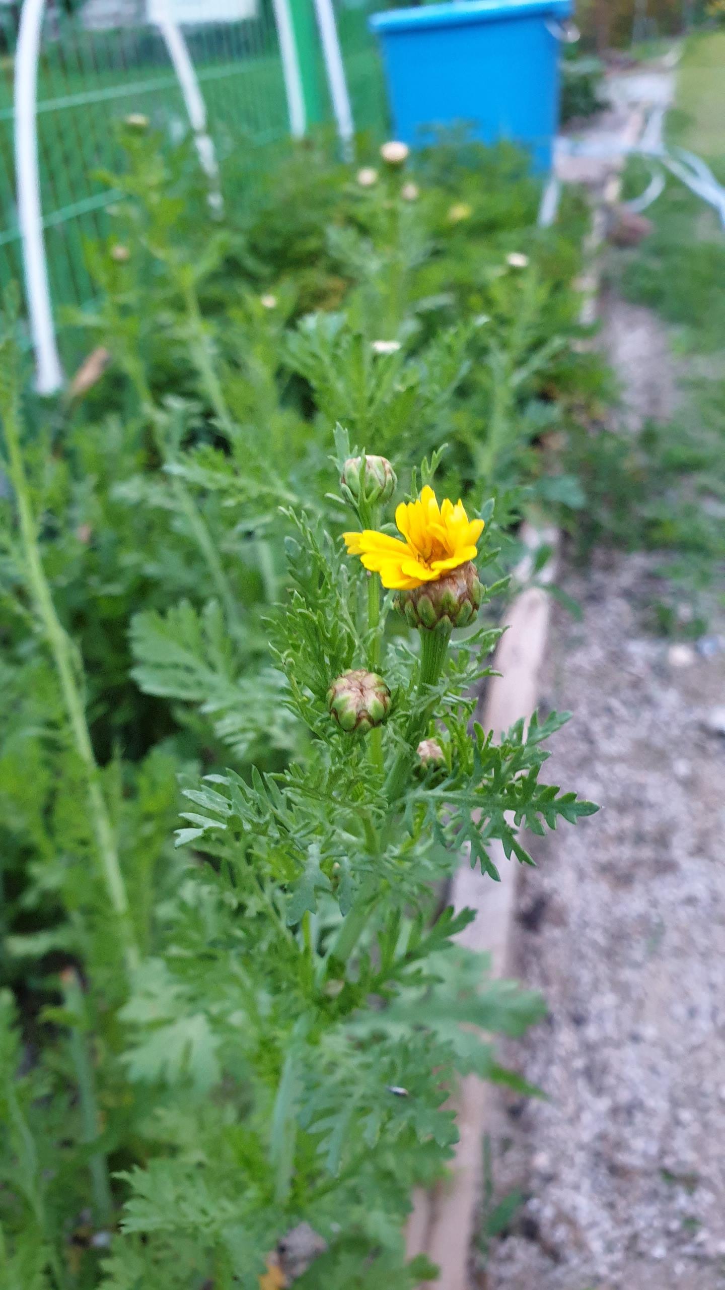 톡 쏘는 향내나는 쑥갓, 꽃말 또한 그에 걸맞는 것 같습니다.