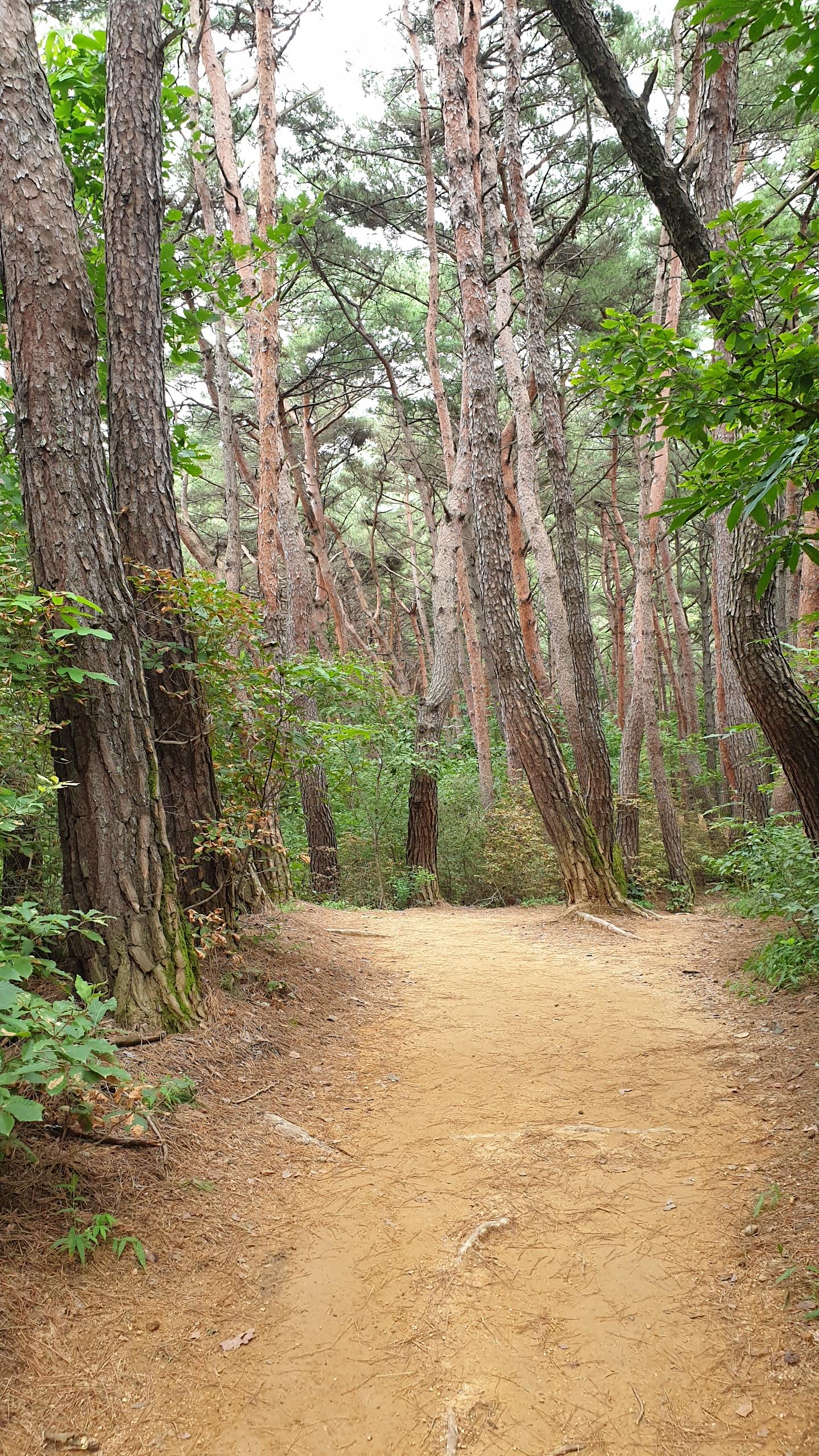 소나무와 참나무가 무성한 숲속 산길,
