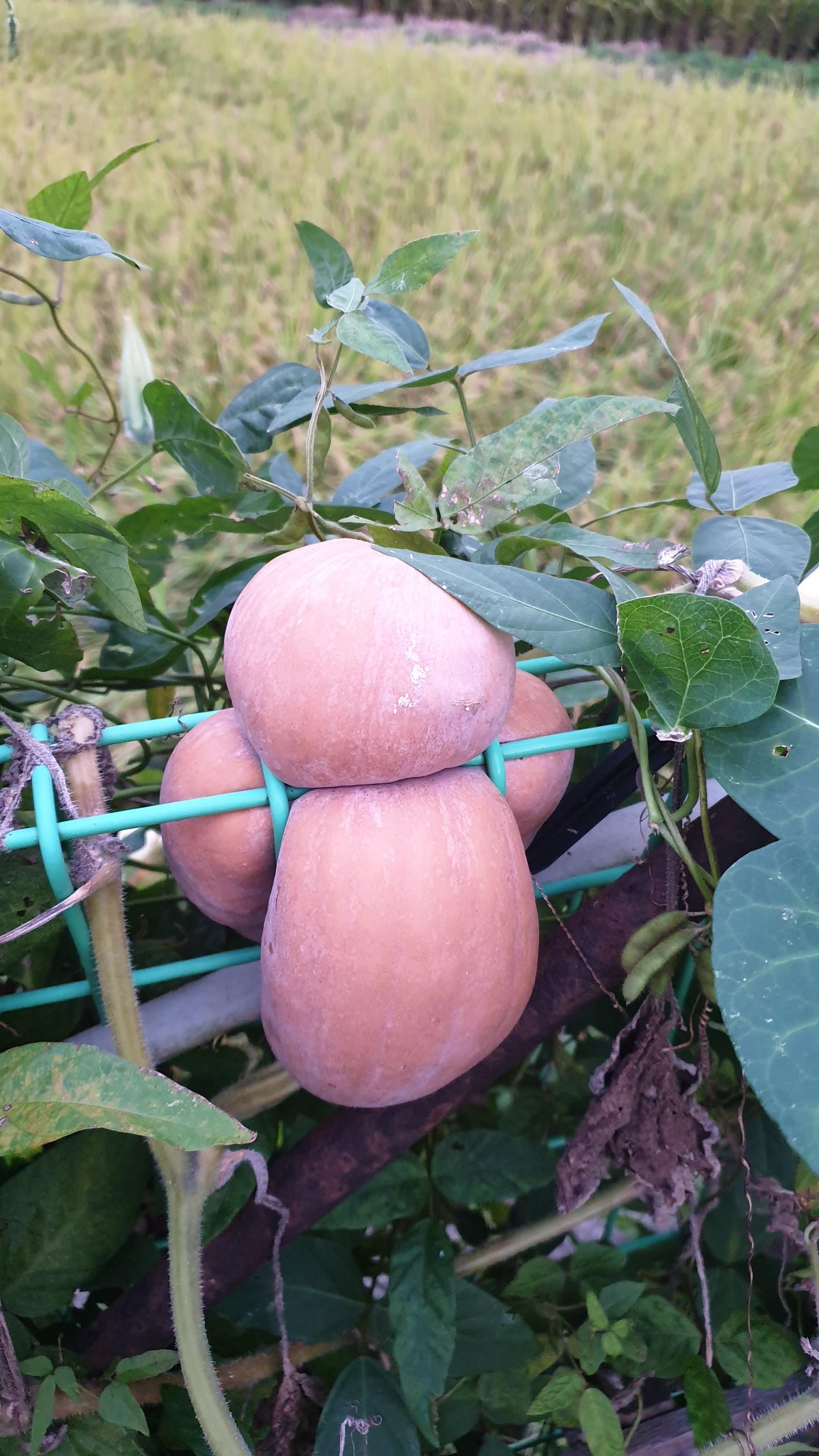 십자가를 짊어진 듯 펜스망 사이로 호박이 자라고 있습니다.